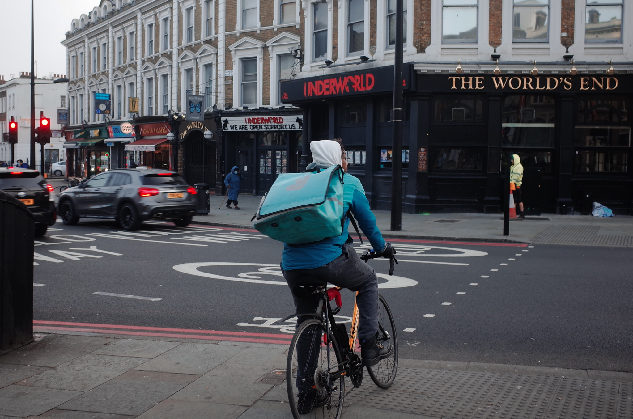 A sight in stark contrast to the bustling, and lively atmosphere the street had a few weeks ago as most shops on Camden High street remain shut and shuttered due to the current lockdown rules.In Harrington Square Gardens signs like this point to a “safe” distance between people and call on passersby to adjust their physical proximity to those they interact with beyond their normal sense of personal space.Places, where people used to be able to move relatively freely, zig-zag around, take convoluted routes, are now characterised by signs, symbols, and barriers that attempt to get people to take a standardised path.Wearing a mask has become a matter of civic duty to many. However, masks have taken on a number of contested identities throughout the pandemic: fashion items, geopolitical bargaining chips, PPE, “signs of weakness”, and many more.On public transport, space is inherently not personal and since “many London jobs can be done remotely”, for many, avoiding travelling for work “remains a much more appealing prospect than squeezing on to a rush-hour [bus].” – James Cheshire Unlike in March, the food stalls of Camden Market remain open during this lockdown, however, “social infrastructure” like benches have been ribboned and closed off to visitors.Several commercial billboards on the underground have been replaced by ones displaying the government’s health and safety rules. While ownership of the signage has shifted, the intention remains the same: to gain control over peoples social or economic actions.Not only state agents police these new geographies, others in the community do so too. Restaurant staff may, for example, require customers to disinfect their hands in order to enter. At the moment, the only way restaurants can legally stay open is through takeaway, click-and-collect, drive-through or delivery services. In contrast, the UK government implemented its “eat out to help out” scheme in August.“Less shopping and more working from home means more households are using Deliveroo and other gig economy platforms more frequently …[and] approximately 35-55% of existing [European] consumers intend to continue using delivery more in the future” – John NaughtonThe economic impacts of the lockdown are felt especially by those for whom, it is not possible to work from a distance. Not only due to the restrictions that are in place but also due to “spatial anxiety” of customers.The hospitality industry was hit particularly hard during the first lockdown. 72 percent of UK pubs and restaurants now believe they will be forced to close next year ( https://www.theguardian.com/business/2020/nov/18/uk-restaurants-and-pubs-call-for-help-as-72-fear-closing-permanently)The pandemic isn’t the only threat to the high street, years of austerity measures combined with the rapid spread of online retailing have also contributed to the decline of these spaces.“Covid isn’t responsible for the death of the high street but is, without any shadow of a doubt, accelerating pre-existing trends.” – Aaron Bastani“I know pretty much everyone in the high street, all the shop keepers. I miss the people and the camaraderie that goes with that. I just hope the small businesses survive as they are the heart of this community.” – Nick Mavrides (runs Ace Sports in Kentish Town) Space at any particular moment in time “is in the process of being made. It is never finished; never closed” (Massey). Thinking of spaces as “a product of our relations with each other” gives me hope that currently, dead spaces will be full of life again when social distancing measures are no longer necessary.