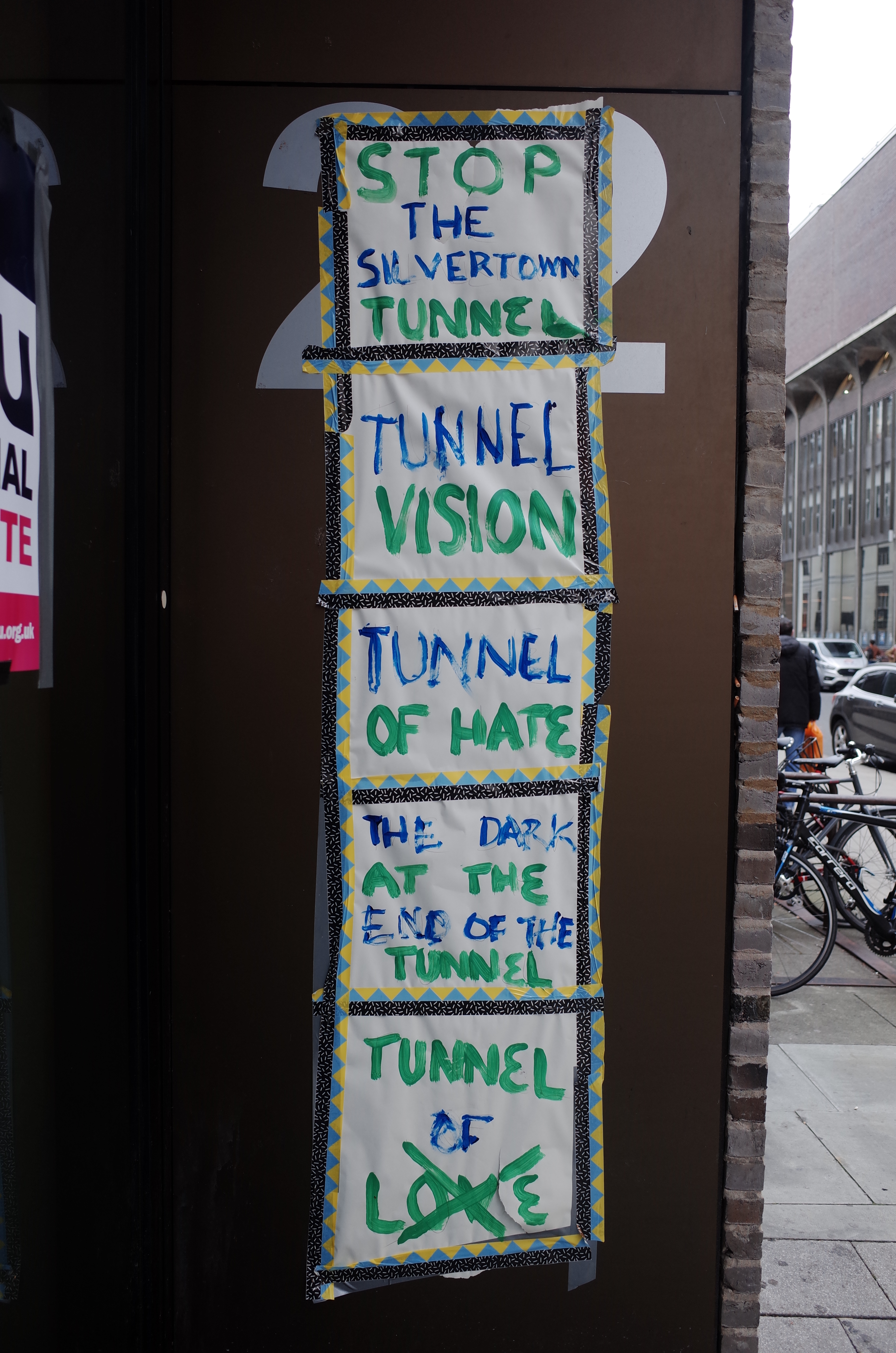 Transport networks are critical to the everyday experiences of life in the city and can promise progress, freedom, and development through the connections they facilitate (Appadurai, 2013). In London, river crossings play a prominent role in how the future of the city and its networks is imagined. There have long been fewer cross-river connections in the east of the city than the west as the Thames becomes wider as it flows downstream to the east. (There are only a handful of ways to get across in East London: the Rotherhithe Tunnel, the Blackwall Tunnel, The Woolwich Ferry, two-foot tunnels, the Emirates Air Line, and then the Dartford Tunnel and QE2 bridge). While the Thames is 250m wide at Tower Bridge, it reaches an impressive width of 570m by the time it gets to Dartford (Rosehill, 2017). As such, it becomes a much greater undertaking to overcome the physical constraints of the river. Within this context, the Greater London Authority approved the construction of the Silvertown Tunnel in 2018 (Silvertown Tunnel, 2018). The 1.2 billion pound Thames road crossing is set to link the Greenwich Peninsula to South Silvertown via a 1.4-kilometre twin-bore road tunnel. Major Sadiq Khan argues the project will “massively reduce congestion in the area, improve air quality and support economic growth in east London” (Kahn, 2020). However, the prospect of a new car-centered cross-river connection presents a threat for many. The project has been deemed “incompatible with the Greater London Authority’s aim to become carbon-neutral by 2030”, and there is considerable doubt around the promise that congestion will be elevated by adding the tunnel to the road network (Taylor, 2020). As one activist put it, “if the tunnel is a disaster, we’re stuck with it – and its jams” (Chamberlain, 2019a). While construction has begun, momentum is building behind the campaign to “Stop The Silvertown Tunnel”. Thus, in reimagining dis/connection, we must move away from thinking connection is inherently desirable and acknowledge that infrastructures are situated within complex and non-stationary social and environmental realities.